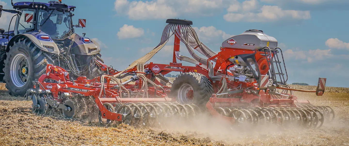 Встановлення додаткового бункера SH на сівалку або стерньовий культиватор KUHN бере участь у цих розробках, пропонуючи можливість за один прохід: