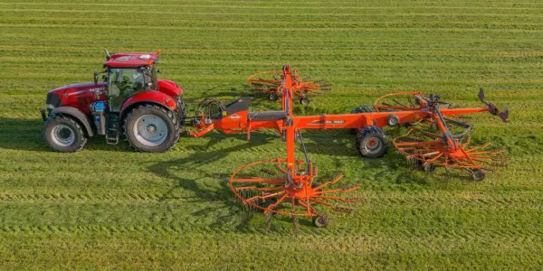 Чотирироторні граблі GA 13231, GA 14231 та GA 15231 працюють з шириною захвату від 8.40 до 12.50 метрів, від 9 до 13.70 метрів та від 9.50 до 14.70 метрів відповідно. Їхній 100% гідравлічний привід заощаджує вам одну годину технічного обслуговування на день.