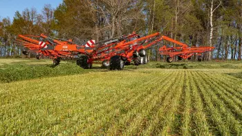 Ротори приводяться в рух гідравлічними насосами, що приводяться в дію однією трансмісією, що мінімізує обслуговування. Забудьте про щоденне змащування вторинних трансмісій. Ви економите до однієї години порівняно з механічно приводними граблями того ж розміру. Це може мати значення, коли йде дощ, і врожай потрібно швидко зібрати. Це зменшує потребу в технічному обслуговуванні.
