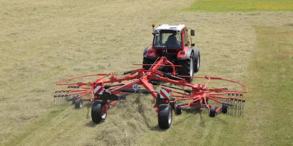 Валкоутворювачі з двома роторами GA 6501, GA 7501+ формують валок по центру машини з робочою шириною від 5.40 до 7.40 м. Якість згрібання вражає: вони згрібають рослинну масу в ідеальні валки, забезпечуючи її швидке висихання.
