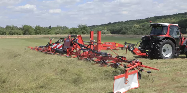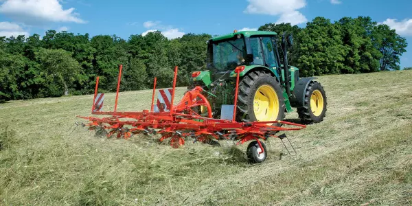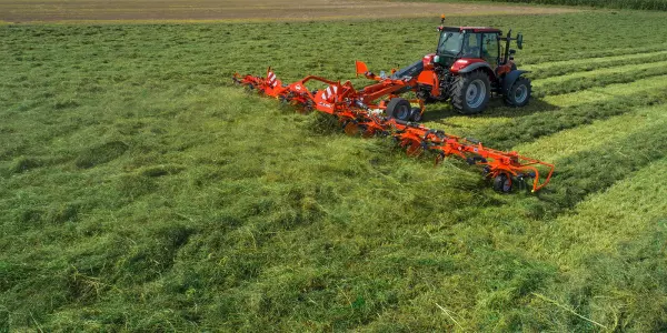 Асортимент начіпних сіноворушилок KUHN тепер має нову ексклюзивну модель. Сіноворушилка GF 13003 – перша начіпна модель із робочою шириною 13.00 м. Вона оснащена новими роторами KUHN OPTITEDD.